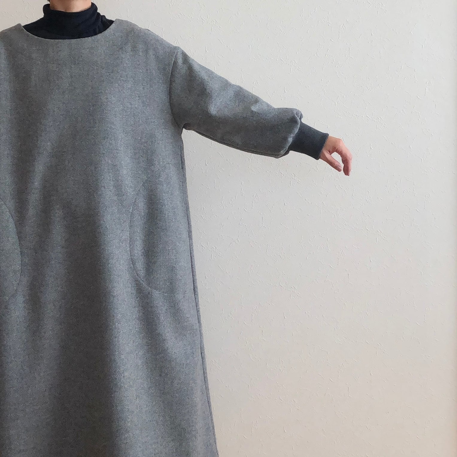 ウール混のヘリンボン柄で温かみがありタートルネックと合わせて着るのがおすすめです。